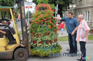 Obrovský kvetináč s dlhodobo kvitnúcimi kvietkami sa osadil za pomoci mestského podniku Technické služby a bude spestrovať naše mesto až do neskorej jesene rovnako ako kvetinová výzdoba na stĺpoch verejného osvetlenia pozdĺž chodníka od hornej časti Župnej ulici až po dolnú svetelnú križovatku.