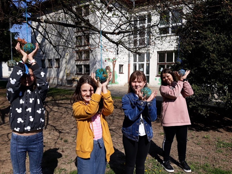 Tieto tipy naši žiaci nielenže doma robia, ale symbolicky ich vhodili = investovali na papierikoch do planéty, ktorú vyrobili šikovní piataci na krúžku Kreatívne tvorenie. Okrem papierovej planéty si vyrobili piataci aj malé symbolické planétky z machu a vlny. Jednou z aktivít bolo uskutočniť kvíz s environmentálnou tematikou v škole a my sme do kvízu zapojili deviatakov. Overili si tak mnohé vedomosti z ekológie a environmentalistiky. Udržateľná móda bol ďalší z tipov z prezentácie. S piatakmi sme si preto vyrobili zo staršieho trička nové batikované tričko len s pomocou šnúrok a farby na textil. Farby hrali hlavnú úlohu aj pri dotváraní plátenej tašky, ktorú použijú deti miesto plastovej. Každé tričko a taška sú originálne a to sa deťom naozaj veľmi páčilo. A že naši žiaci sú kreatívni, potvrdili aj pri tvorení prívesku – planéty z modelovacej hmoty. Všetky tieto aktivity sme venovali našej planéte. Sme radi, že sviatok Deň Zeme u nás v škole netrval iba 1 deň, ale viac ako 1 mesiac. Uvedomujeme si zároveň, že našej planéte určite nebude stačiť iba mesiac. Chceme preto viesť deti k tomu, aby pokračovali v tých aktivitách počas celého roka a brali to ako „investíciu“ nielen pre planétu, ale hlavne pre svoju budúcnosť.
