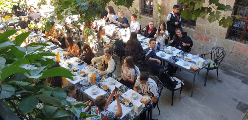 V nasledujúcich dňoch sme pokračovali v pracovnom programe. Nejednalo sa pritom o žiadny pohodový či formálny výlet, naopak, pracovný program bol veľmi intenzívny a zostavený ako mix prevažne vzdelávacích a poznávacích aktivít “od rána do večera” na hostiteľskej škole a v regióne východnej Anatólie. Postupne sme navštívili miesta zodpovedajúce tématike projektu “Kunst und Kultur”, ktoré naši hostitelia zaradili do itinerára mobility: múzea, historické a národopisné objekty, stavby a pamiatky zapísané do zoznamu UNESCO. Žiaci odboru grafik digitálnych médií boli počas celého pobytu nadšení z možnosti prejaviť svoje grafické schopnosti, napríklad si vyskúšali, akým spôsobom sa tvorí tradičná turecká grafika „maľby na vodnú hladinu“ – mramorovanie, prácu s keramikou, či dokumentačné fotografovanie krajiny, aktivít a objektov. V stredu sme sa všetci stretli na kultúrnom večierku, kde v rámci jeho programu každá krajina zaspievala dve pripravené piesne a máme (súdiac podľa potlesku 😀 ) nádej, že naše acapella podanie “Na kráľovej holi” malo celkom úspech. 🙂
