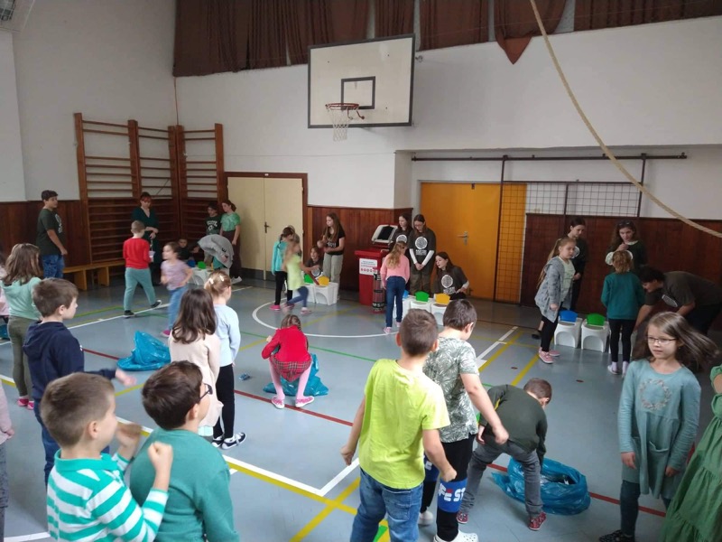 V druhej polovici programu sme si pre žiakov pripravili zaujímavé edukačné úlohy. Prvé tri ročníky nám ukázali, ako vedia perfektne separovať odpad. Štvrtý až šiesty ročník si lámal hlavu nad všakovakými elektrospotrebičmi, kde bola dôležitá tímová spolupráca. A tri najvyššie ročníky hrali eko bingo, čím sa mohli navzájom aj lepšie spoznať.