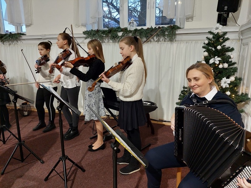 vianočným koncertom ZUŠ, na ktorom odzneli nádherné sviatočné melódie v podaní našich žiakov a pedagógov sme aj my v našej škole chceli popriať všetkým rodičom a pristeĺom krásne adventné dní a Vianoce plné zdravia,radosti a hojnosti stola i lásky v srdciach všetkých.