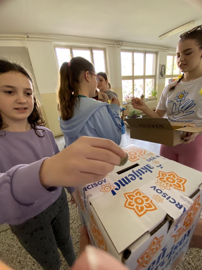 Prispieť na podporu ľudí s rakovinou môže každý. Liga proti rakovine pomáha onkologickým pacientom na Slovensku už 33 rokov. (cit. LPR). S LPR spolupracuje aj naša škola. Veľmi radi sa zapájame do tejto krásnej charitatívnej akcie. Tento rok sa uskutočnil už 27. ročník Dňa narcisov. Naši deviataci boli súčasťou 11 500 dobrovoľníkov, ktorí 20. apríla po celom Slovensku pomáhali uskutočniť zbierku. Oblečení do bielych tričiek uskutočnili deviataci zbierku v škole. Žiaci, učitelia, nepedagogickí pracovníci prispeli rôznymi dobrovoľnými príspevkami do pokladničiek LPR. Vyzbierali sme krásnu sumu – 308,34 eur. Aj táto suma pomôže zabezpečovať projekty, ktoré sú realizované s poznaním potrieb a problémov onkologických pacientov. Veríme, že sme k tomu dopomohli aj my zo ZŠ Mojmírova.