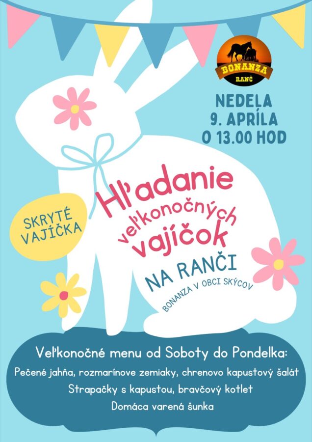 - 14:00 – 15:00 hod Hľadanie veľkonočných vajíčok + vyhodnotenie zaujímavými cenami