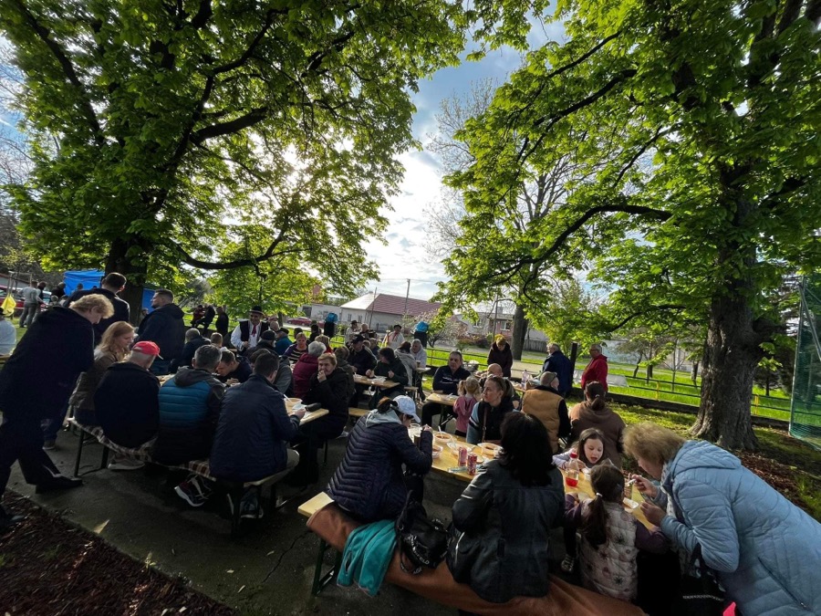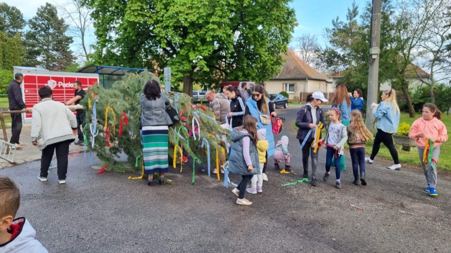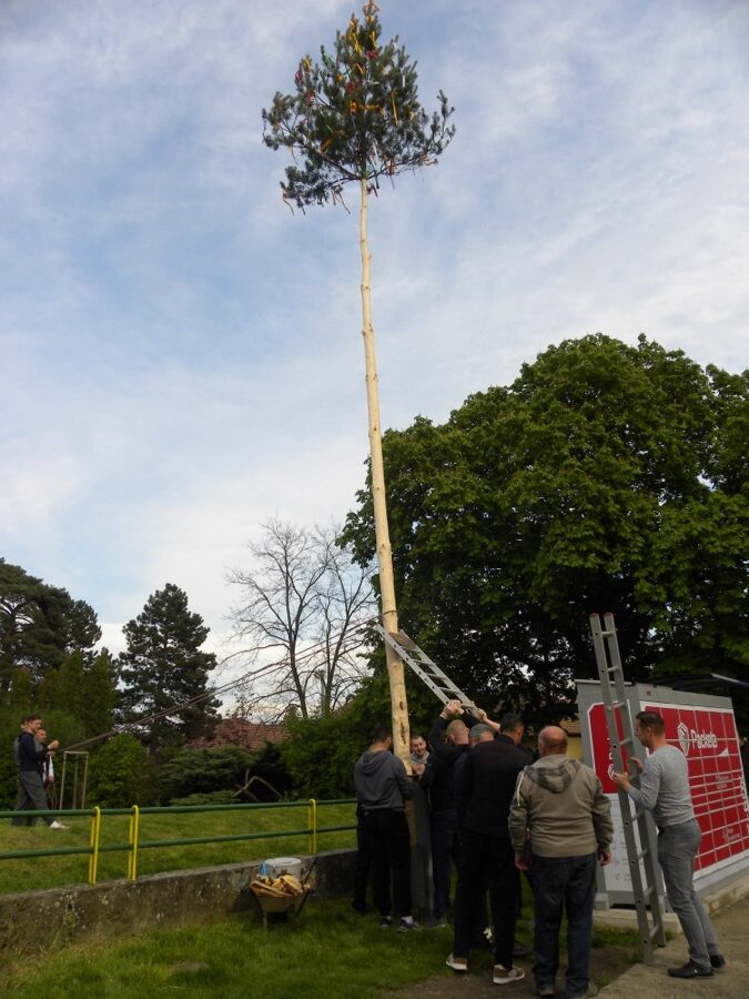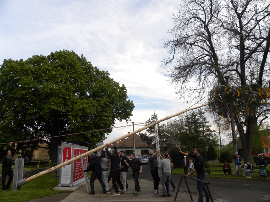 Chlapi sa pustili do práce a všetci prítomní im povzbudzujúcim krikom „héj rup, héj rup“ pomáhali. Vďaka zjednotenej sile, sa máj dostal do výšky. Keď bol máj na svojom mieste, ľudia ho s nadšením privítali a tlieskali. Viceprimátor a poslanec Marek Holub pozval všetkých obyvateľov Prílep na kotlíkový guláš, ktorý pripravili manželia Rajnohoví. Občerstvenie zabezpečil bufet s názvom „Anička“.