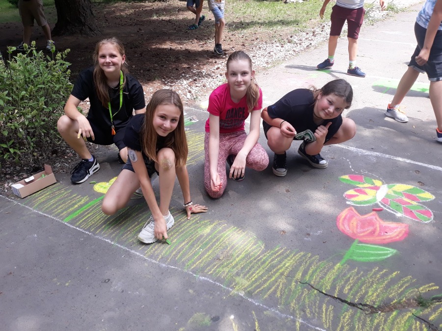 Pokračovali sme praktickými aktivitami s hmyzom, konkrétne so zbierkami motýľov, na ktorých sa žiaci naučili stavbu tela hmyzu. A ako najlepšie pozorovať bezstavovce? No predsa s lupou! Vybavení lupami piataci hľadali bezstavovce v našom areáli. Pozreli sa pod pníky, na kríky, na stromy… hľadali hmyz v tráve a všetky nájdené druhy si zaznačili. Zostalo nám už len vytvoriť z nich ekosystém. Samozrejme nie zo živých, ale z papierových obrázkov rôznych druhov bezstavovcov. A tak vznikli na chodníku krásne farebné obrázky lúčnych ekosystémov. A že boli ruky ( a aj niektoré nohavice) od kriedy? To predsa vôbec nevadilo. Dôležité bolo, že sa deti zabavili a hravou formou naučili niečo nové.