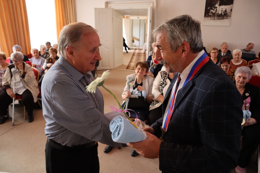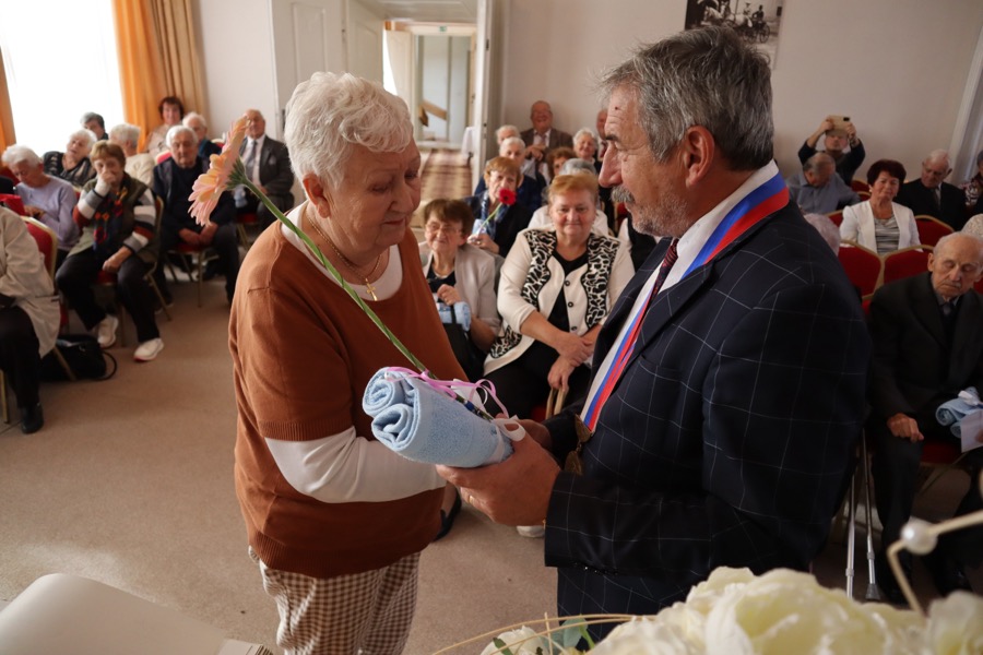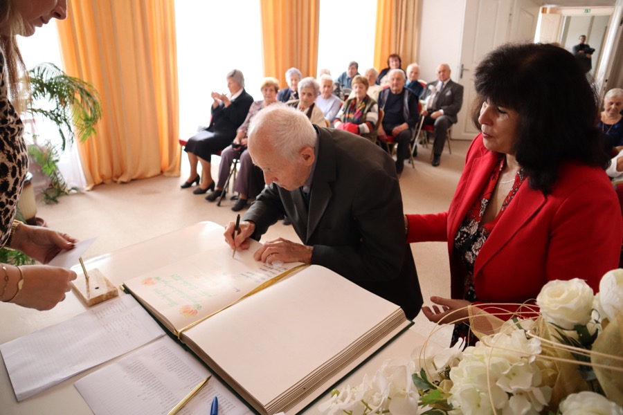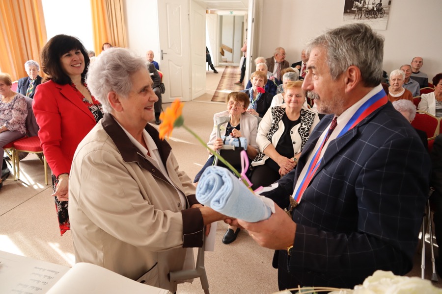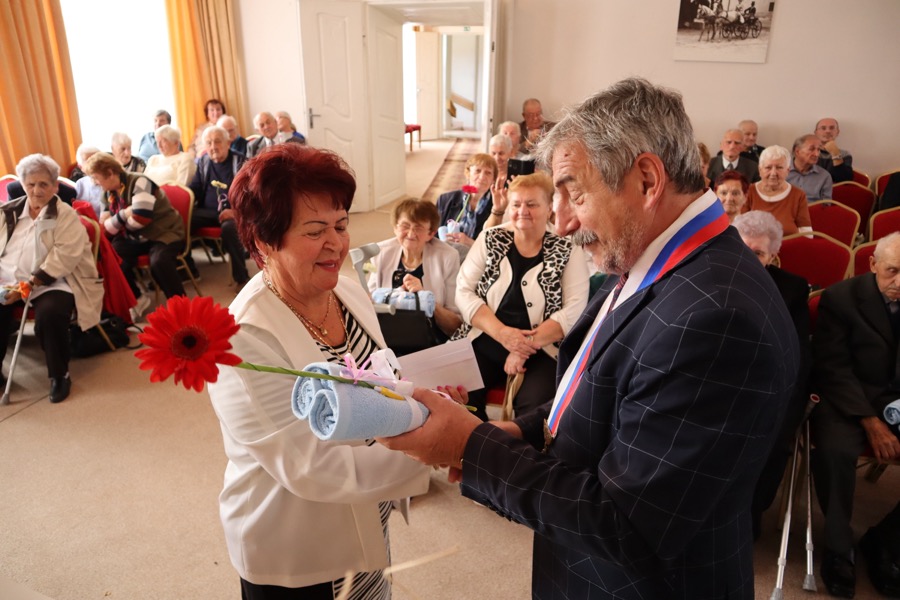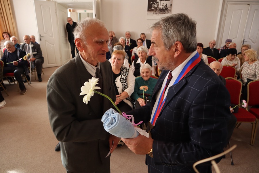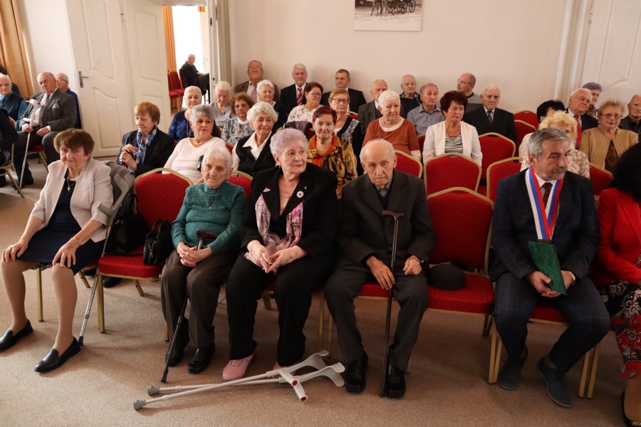 V ten istý deň sa v obradnej sále MSKŠ uskutočnilo tradičné stretnutie s jubilantmi – seniormi, ktorí sa v tomto roku dožili životných jubileí – 80, 85, 90, 95 a 100 rokov. Pozvaných bolo až 107 seniorov. Stretnutie začalo o 14.30 hodine. V úvode stretnutia privítal všetkých seniorov primátor Zlatých Moraviec Dušan Husár. „Dnes si pripomíname vaše okrúhle jubileá, ktoré oslavujete v tomto roku. Najväčšie hodnoty, ktoré človek v živote dosiahne sú zdravie, schopnosť pracovať a zúčastňovať sa užitočnej práce. Môžem vám teda dnes v mene mesta Zlaté Moravce zablahoželať k dobrému zdraviu a dosiahnutiu vzácneho veku,“ povedal jubilantom. „Zo srdca vám želám, nech vás počas jesene života sprevádza len zdravie, teplé ľudské slovo, láskavý pohľad, aby ľudské hodnoty a záujmy vo vás nikdy nevyhasli, lebo láska, krása, cit a vznešenosť šľachtia človeka,“ dodal.