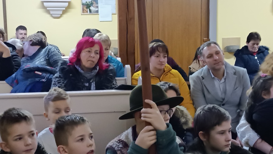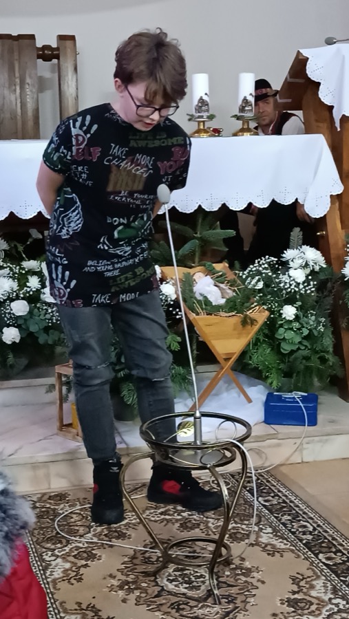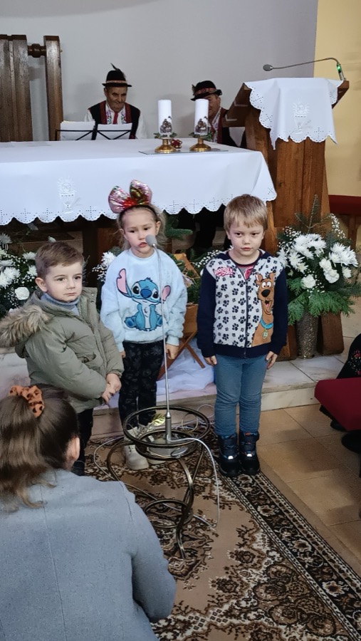 Zazneli pesničky a deti predniesli svoje básničky. Potom spieval spevácky súbor Kolovrátok v krojoch s harmonikou. Do programu prispeli aj harmonikár Janko Ďurech a speváčka Daša Kunkelová. V závere celý kostol spieval pieseň „Tichá noc svätá noc“ za doprovodu dvoch harmoník. Radosť veliká sa šírila, a poslanec Marek Holub siahol do košíka a rozdal deťom sladkosti, lebo Vianoce sú o radosti. Aparáty cvakali, mobily blikali a detské očká žiarili.