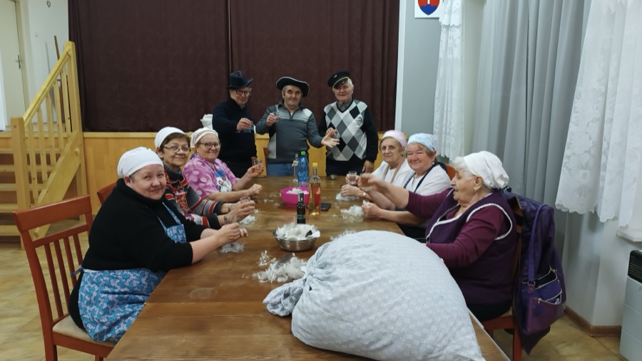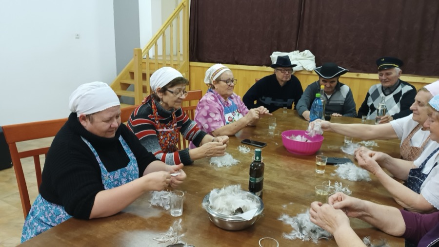 Spevácky súbor KOLOVRÁTOK v Prílepoch symbolicky ukončil fašiangové obdobie páraním peria v sále kultúrneho domu. Zúčastnili sa ho členky súboru a miestni muži.