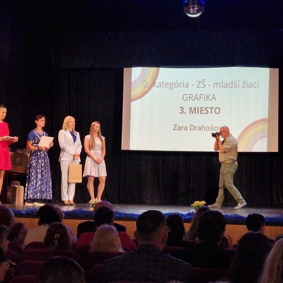 Slávnostné vyhodnotenie sa konalo 2. mája 2024 v Starej Ľubovni. A práve tu sa môžeme pochváliť fantastickým úspechom. Žiačka Zara Drahošová z 1.b triedy získala krásne 3. miesto v II. kategórii. Okrem slávnostného vyhodnotenia si Zara užila aj vernisáž v galérii Provinčný dom, recepciu a prehliadku Ľubovnianskeho hradu a skanzenu.