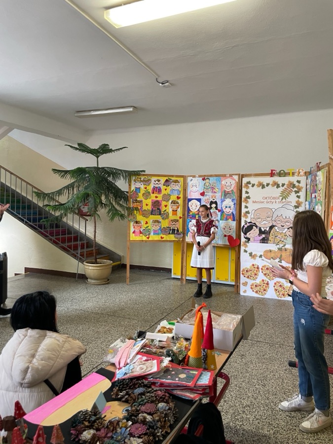 Pesničky v sprievode gitary, básničky, ľudová pieseň v kroji… a ešte viac si mohli užiť ako krásny kultúrny program rodičia a starí rodičia našich žiakov. Október je totiž MESIACOM ÚCTY K STARŠÍM. Pozvali sme preto do školy rodičov a starých rodičov, aby sme im spríjemnili jedno slnečné popoludnie a dali im pocítiť, že si ich naozaj vážime. Okrem bohatého programu, ktorý pripravili p. učiteľky s deťmi v Školskom klube, sme prekvapili rodičov a starých rodičov aj „foto kútikom“, kde si spolu s deťmi urobili zaujímavé a občas aj vtipné fotografie. Kto by sa nepotešil fotke s označením – „som najlepší vnúčik“? Naše popoludnie pokračovalo burzou jesenných výrobkov. Na stoloch sa objavili venčeky z hortenzií, tekvičky vyrobené špeciálnymi technikami, jesenné závesné dekorácie, ručne maľované obrazy, kytičky sušených kvetov a množstvo ďalších úžasných výrobkov vyrobených s láskou a s veľkou dávkou kreativity. Okrem toho bolo pre našich rodičov a starých rodičov pripravené občerstvenie v podobe sladkých a voňavých koláčikov a čaju. Celé popoludnie sa nieslo v duchu príjemnej atmosféry, ktorú si všetci naozaj užívali. Rodičia a starí rodičia odchádzali zo školy plní dojmov a s pocitom, že ich deti a vnúčatká naozaj ľúbia. A to pre nich znamená určite najviac.