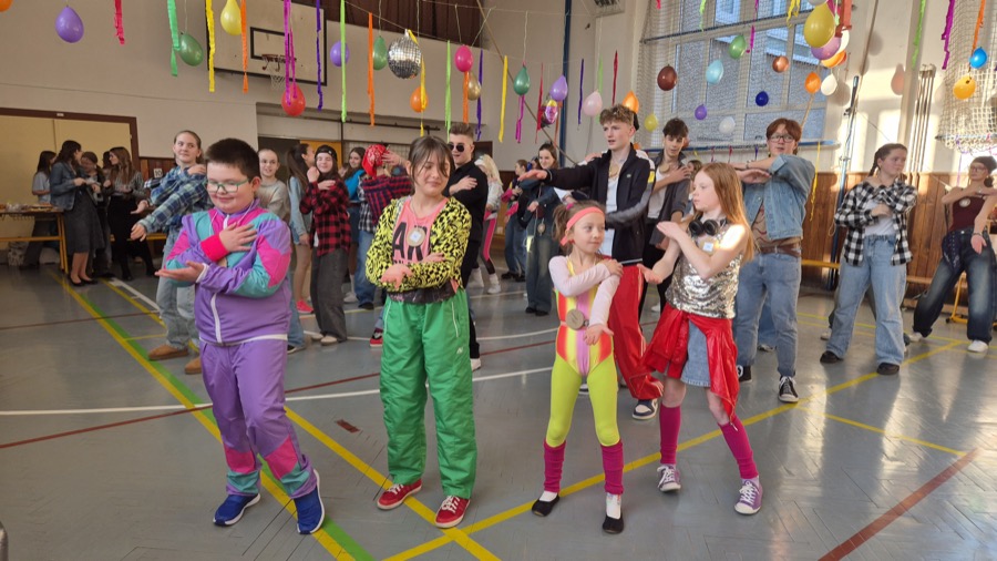 Žiaci mali možnosť zachytiť si tieto momenty vo fotokútiku, kde si na pamiatku spravili zábavné fotky so svojimi spolužiakmi. Párty sme zavŕšili veľkolepou diskotékou, ktorá roztancovala všetkých prítomných. Počas diskotéky odzneli, samozrejme, najznámejšie skladby a hity práve z 90. rokov.