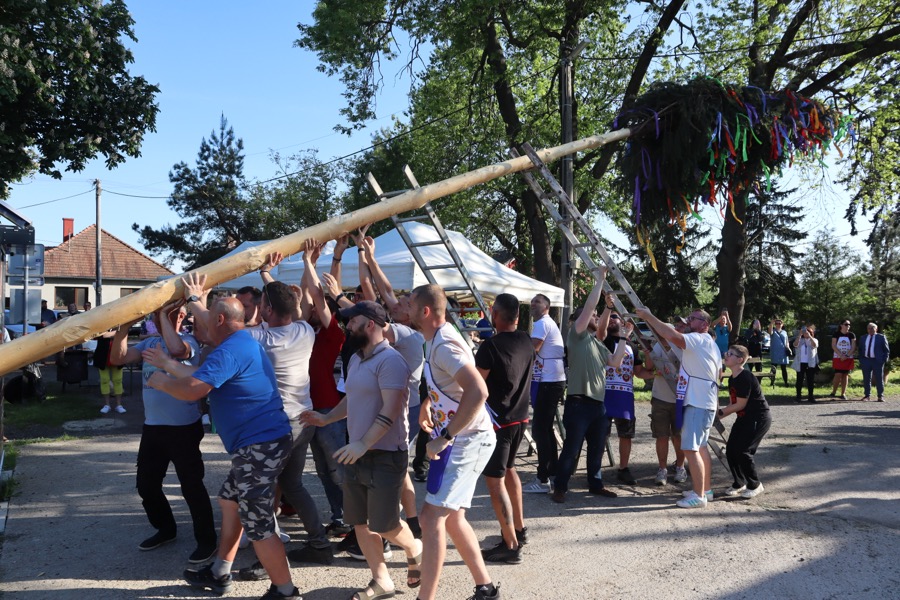 Keď boli s vyzdobovaním hotoví, máj bol za pomoci pracovníkov Technických služieb mesta Zlaté Moravce vztýčený na svoje tradičné miesto, vedľa turistickej informačnej kancelárie.