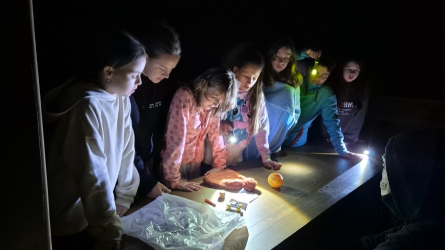 Keď všetci zaspali, alebo si aspoň mysleli, že už je čas na oddych, organizačný tím – žiacky parlament a pani učiteľky – pripravil tajomné nočné prekvapenie. V strede noci sme sa zobudili a čakalo nás veľké dobrodružstvo –
