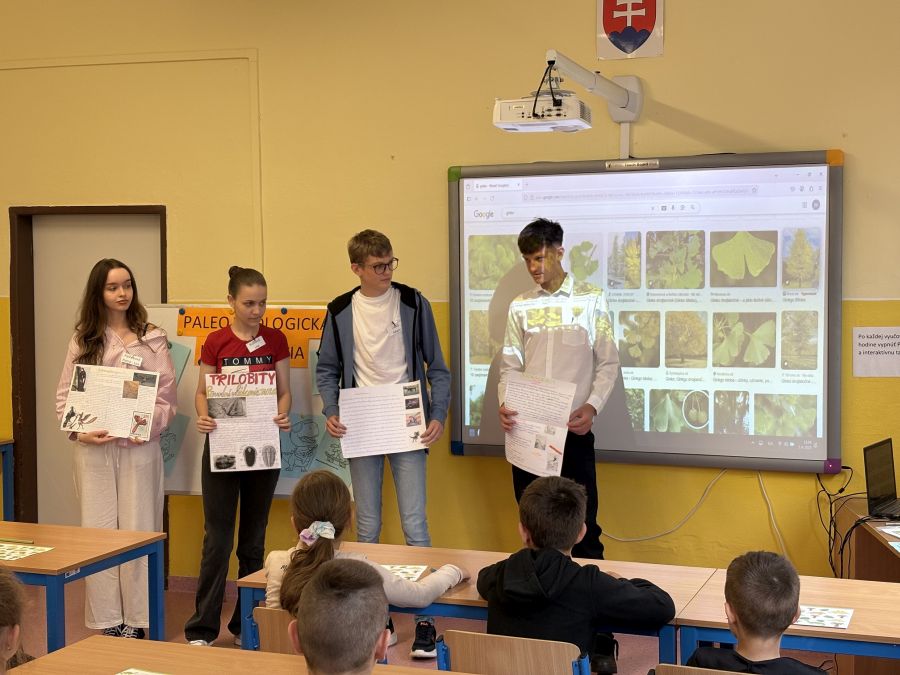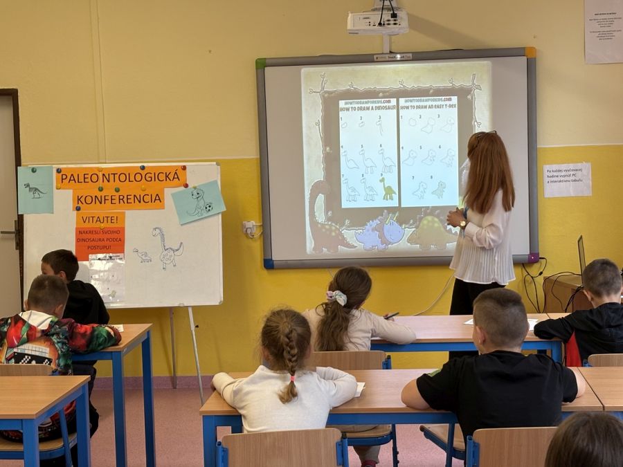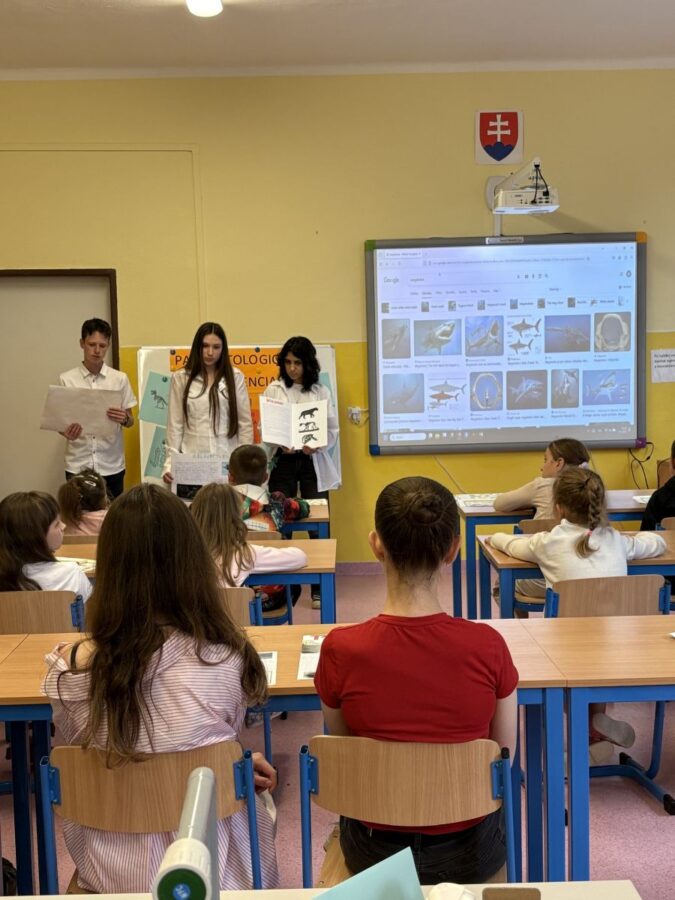 Paleontológ (z gréčtiny) – odborník v paleontológii sa venuje štúdiu fosílií, teda skamenelých zvyškov živočíchov a rastlín, pre pochopenie a poznanie ekosystémov a prostredia, ktoré panovalo na Zemi v minulých geologických obdobiach. Byť paleontológom musí byť fascinujúce. Veď kto by nechcel objaviť nejakú fosíliu – skamenený zvyšok prehistorických tvorov žijúcich v dávnych dobách. Napríklad by to mohli byť zvyšky po živote dinosaurov, alebo žraločí zub, ktorý sa mimochodom dá nájsť napr. na lokalite Sandberg pri Bratislave. A práve na paleontológov sa zahrali aj naši druháci na „Paleontologickej konferencii“, ktorú sme pre nich pripravili spolu s deviatakmi.