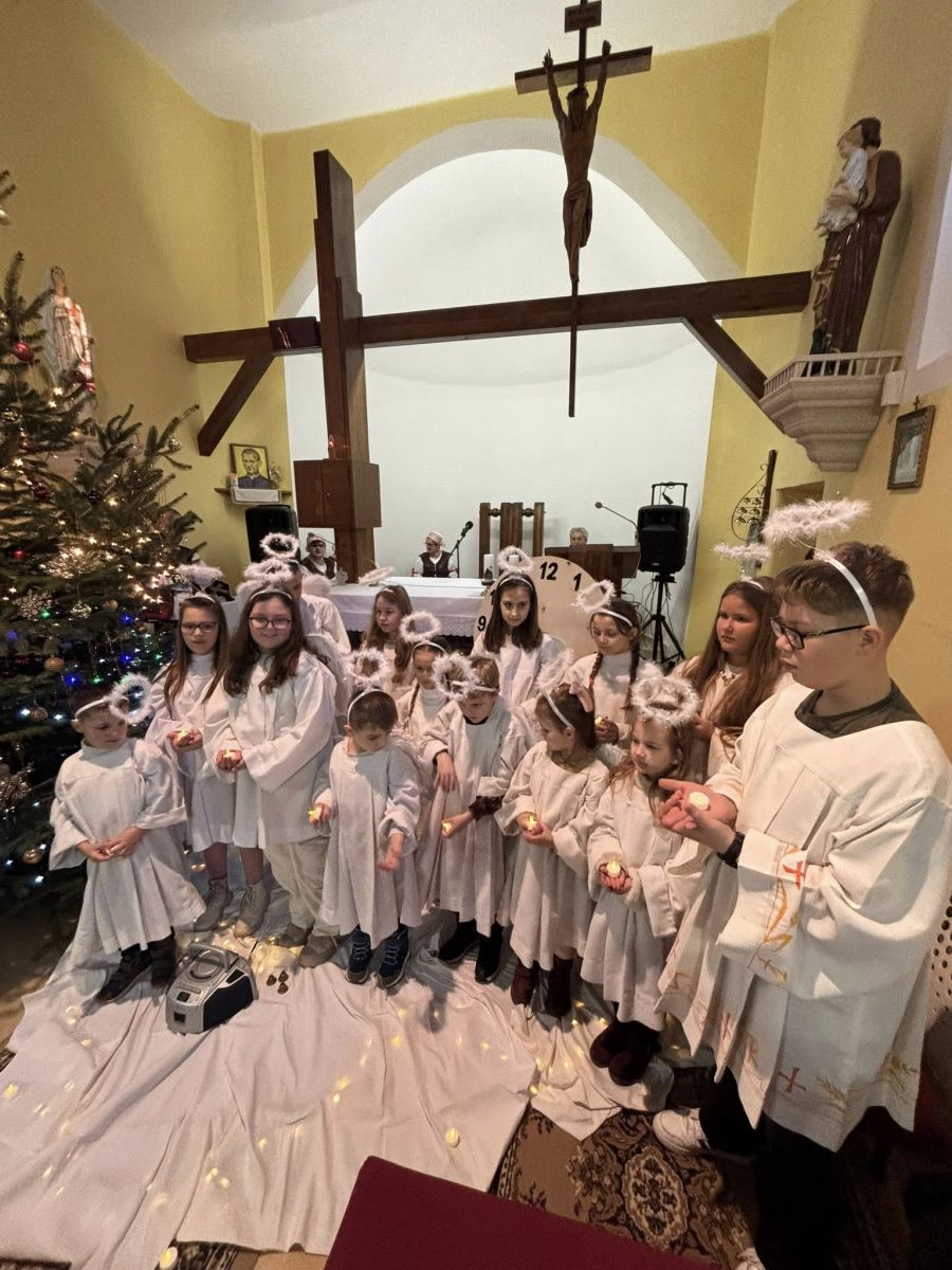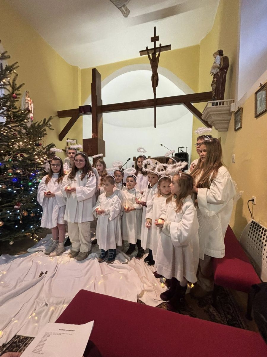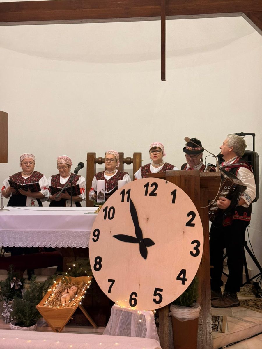 V úvode sa prítomným ľuďom prihovoril vdp. farár DON Marko Virág, ktorý nás prišiel pozdraviť a povzbudiť a poprial príjemné a požehnané vianočné sviatky. O dojímavý program sa postarali deti z našej obce a spevácky súbor Kolovrátok, ktorý pobožnosť obohatil tradičnými koledami a ľudovými piesňami. Po skončení jasličkovej pobožnosti boli všetci prítomní srdečne pozvaní do kultúrneho domu, kde ich čakala chutná vianočná kapustnica. V závere viceprimátor Marek Holub poďakoval deťom, speváckemu súboru Kolovrátok za pripravený program, pesničky pri jasličkách. Tiež poďakoval všetkým prítomným za účasť a poprial Šťastný Nový rok. Spoločné stretnutie v príjemnej atmosfére bolo krásnym zavŕšením tohto výnimočného podvečera, plného tradícií, spolupatričnosti a sviatočnej pohody.
