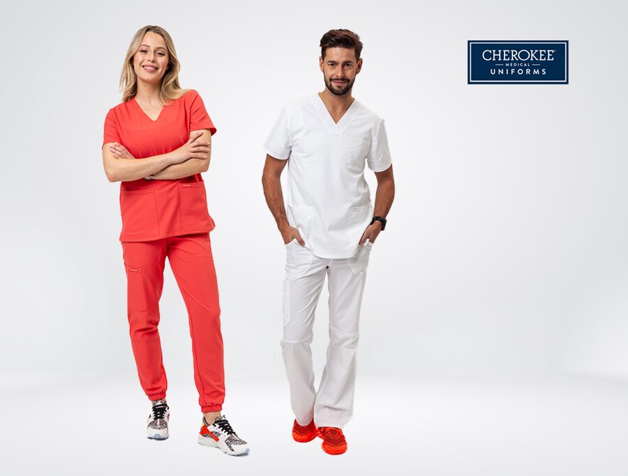 Značka Cherokee patrí medzi najznámejšie značky scrubs. Ich dizajn vznikol v spolupráci so zdravotníkmi a zohľadňuje každodenné potreby v práci. Uniformy majú viacero praktických vreciek a detailov, ktoré uľahčujú organizáciu pomôcok. Materiály sú príjemné na dotyk, odolné a držia tvar aj po častom praní. Farby neblednú a udržiavajú si intenzitu.