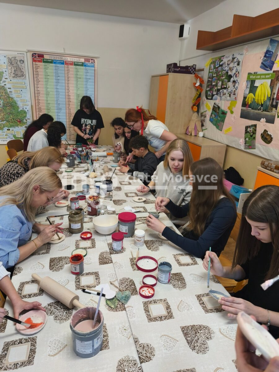 Pracovný program sa začal v pondelok 9. marca 2026 slávnostným privítaním hostí v priestoroch našej školy. Pribinka si pre partnerov pripravila pestrý program plný hudby, tanca, spevu a tvorivých dielní. Nechýbali ani rôzne ekologické hry a súťaže. Účastníci sa zapojili napríklad do hudobného workshopu, výroby mydla či identifikácie drevín. Veľký úspech mal aj keramický workshop, počas ktorého si hostia vytvorili vlastné keramické výrobky, ktoré im zostali ako milá spomienka na návštevu. V popoludňajších hodinách sme absolvovali odbornú prednášku pani Paulovej z občianskeho združenia Tribeč – Lesy Slovenskej republiky v Topoľčiankach. Program prvého dňa sme zakončili turistikou a návštevou Zubrej obory v Lovciach.